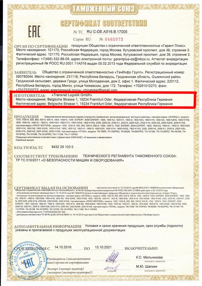 гарантийный срок: 24 месяца