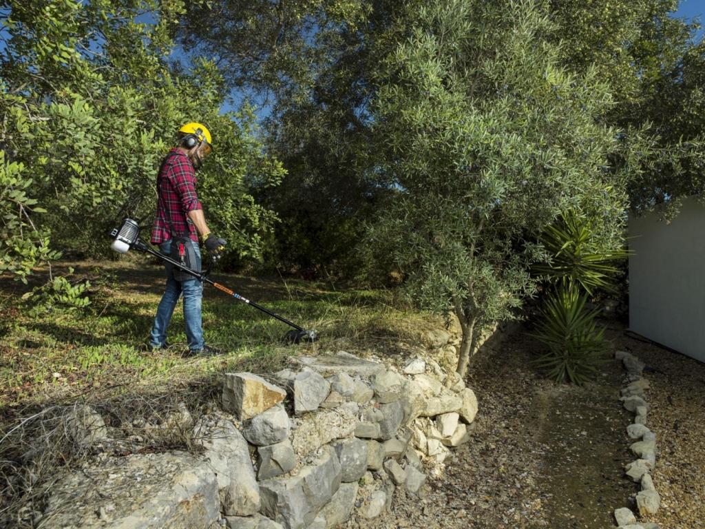 - Направлять мотокосу легче: руки разнесены шире и соответственно плечо поворотной силы длиннее;